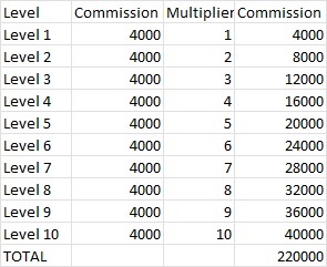 | Level | Commission (₦) | Multiplier | Total (₦) |